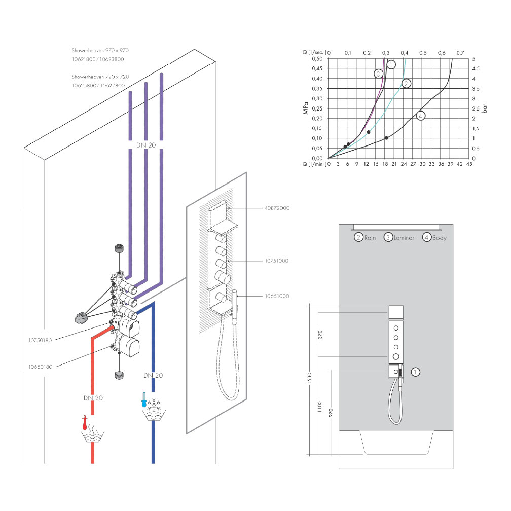 - when positioning the shelf between waterconducting parts (# 10755XXX, # 10751XXX, # 10942XXX, # 10972XXX, # 10651XXX, # 28491XXX) in joined installation (10 mm distance), it is recommended to use basic set no.40877180
