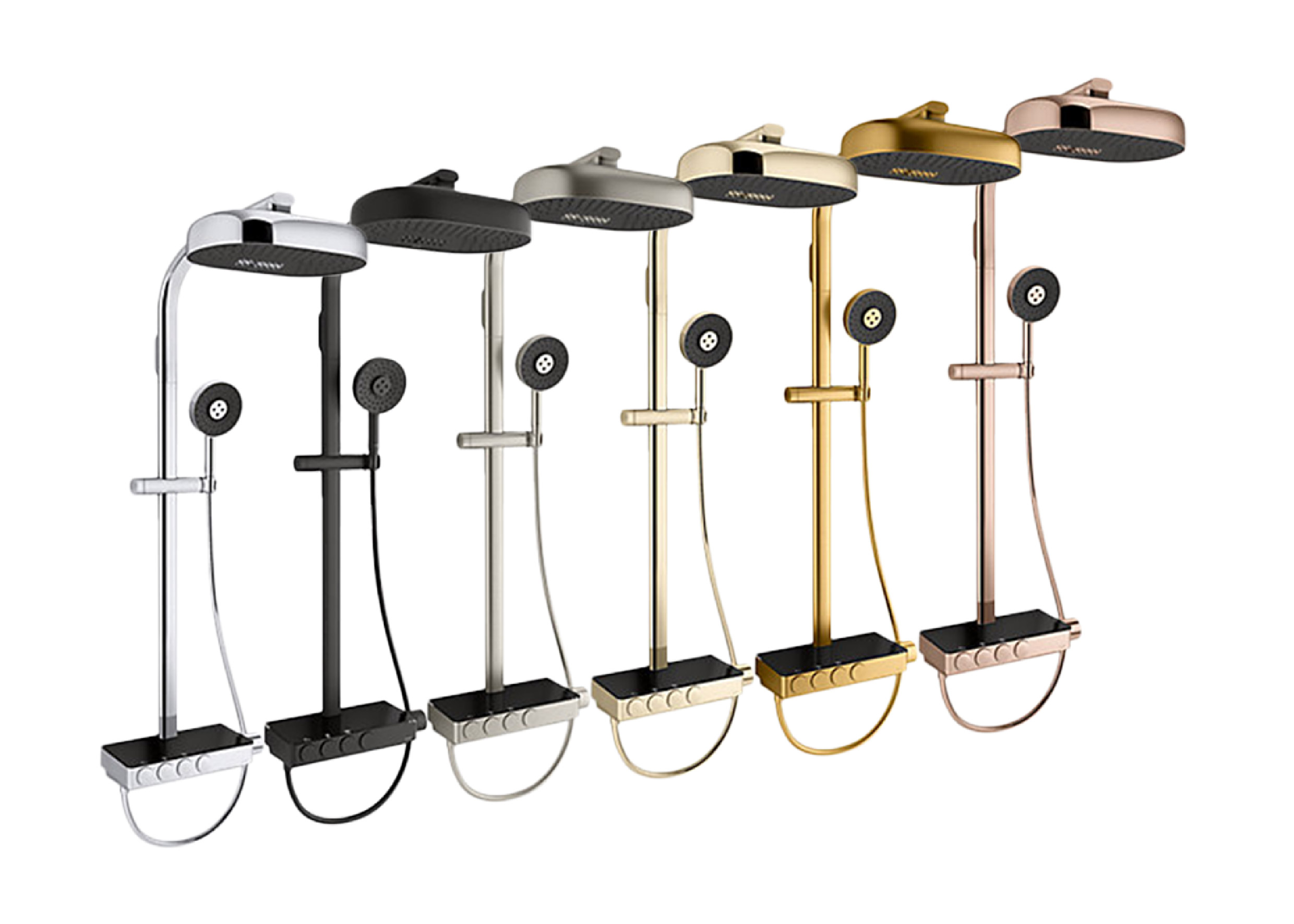 - Includes bath/shower column, multifunction rainhead, handshower, hose, thermostatic valve and control panel with integrated bath filler