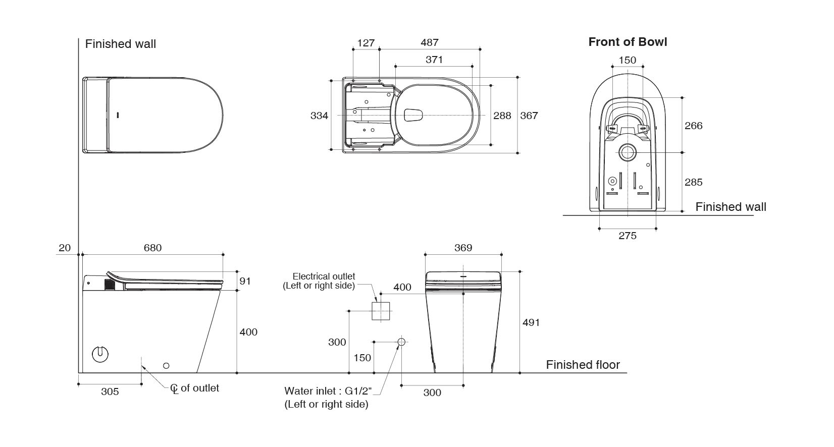 - Automatic flushing after every use; flush can also be controlled by the remote control or backup button